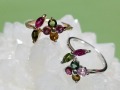 花形に色とりどりのトルマリンが配置され、葉と花の部分が繋がっていないためサイズ調整が可能です。