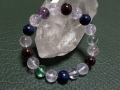 フローライト、ガーネット、デュモルチュライトをピンクレムリアンシードクリスタルで挟むことにより、それぞれの石の「調和・統合・強化」をはかり、力強く美しさの絶妙なバランスで素晴らしいブレスを作りました。