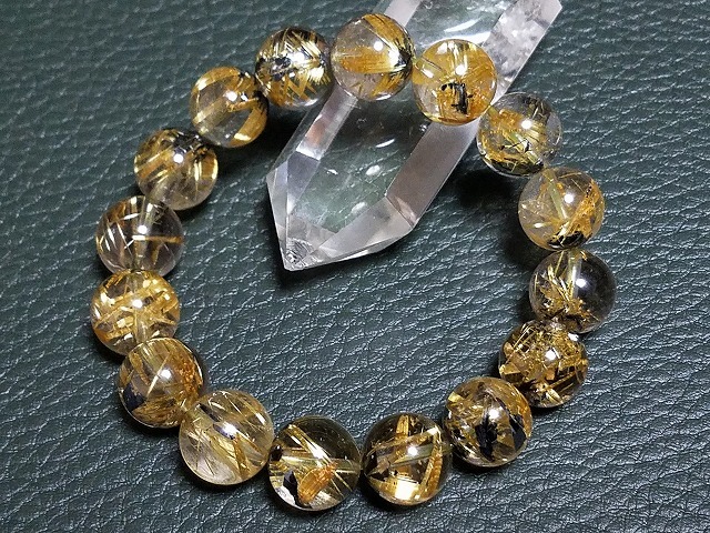 最強パワー!! 母岩ヘマタイト入りゴールドタイチンルチル 5A★13-13.5mm★内周約17cm★45g [o11]