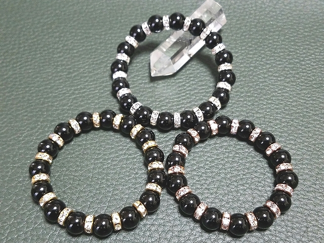 ブラックトルマリン(ロンデル入り)ブレスレット★10mm [b48]