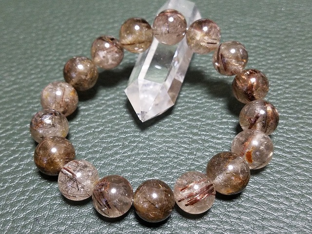 ブラウンルチルブレスレット★12.5mm×17珠★内周17.5cm★45g [b64]