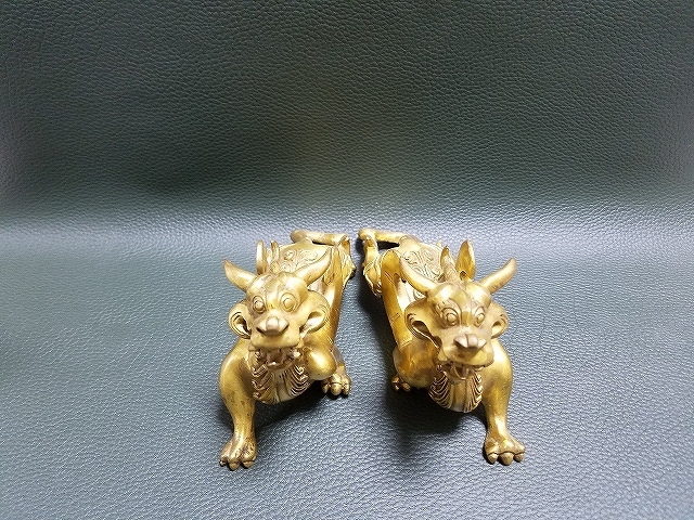 「古代版貔貅(ヒキュウ)」★雌雄一対★銅製 [h4]