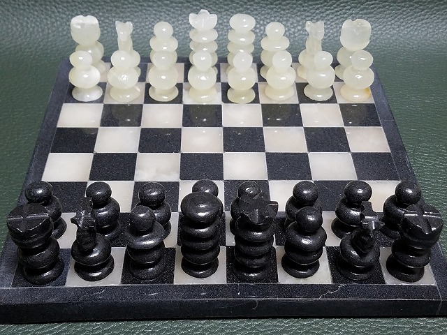 ★限定1点★ 天然石製 ミニチェス(黒&白) [r4]